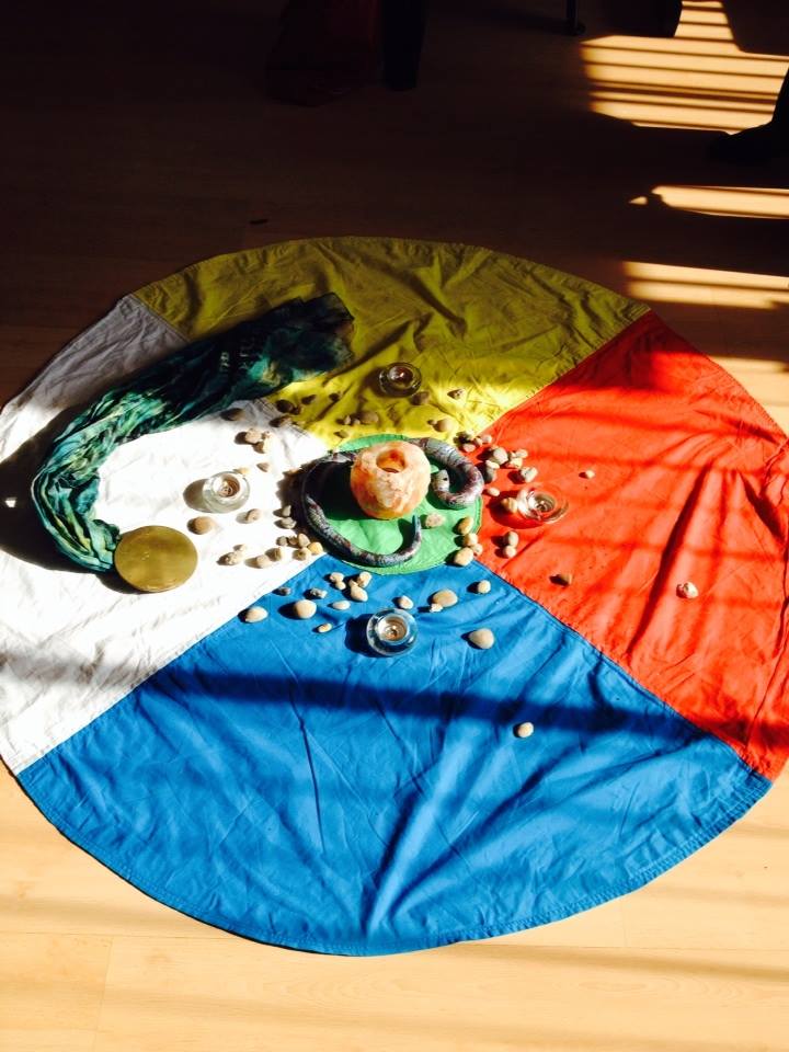 Zelf ook de cirkel gelopen, contact gemaakt met de krachtdieren/windrichtingen.
