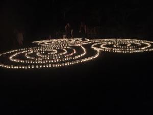 ‘s avonds het Triskelion-labyrinth gelopen, een magische ervaring van steeds wisselende wervels in het patroon: