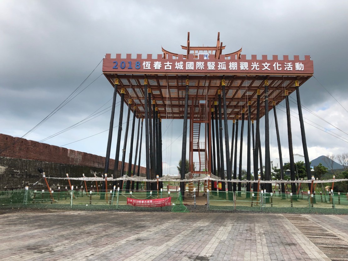 Op weg naar HengChun (eeuwige lente)… een platform voor Hungry Ghost Festival, helemaal bovenaan wordt dan een offer voor de geesten gedaan