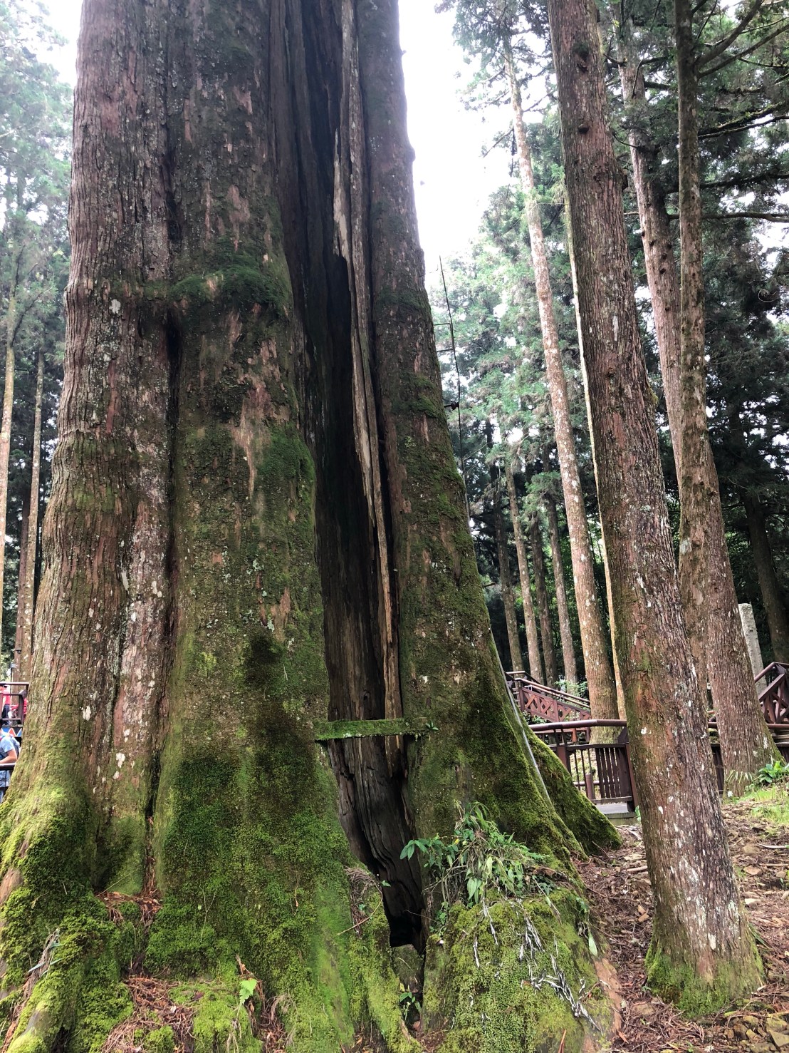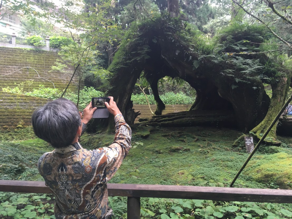 We gaan naar het bos, waar ooit veel bomen stonden die een paar duizend jaar oud waren. De meesten zijn tijdens de Japanse bezetting gekapt, om er tempels in Japan voor te maken. De overblijvende stronken zijn reusachtig en nog bijzonder magisch gevormd.