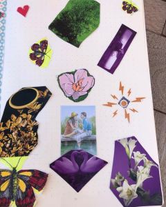 This collage has a vibrant and eclectic feel, featuring a variety of visual elements that blend organic and artistic themes. Here’s a detailed review: