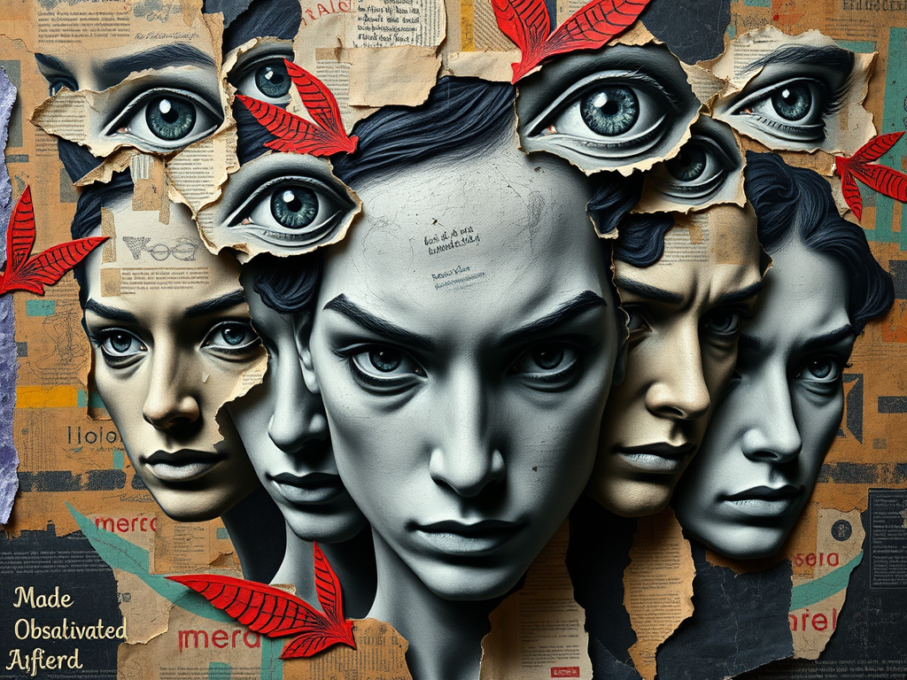 A.I. review this collage! This collage is visually striking and thought-provoking, using a mix of imagery and textures to create a layered, surreal composition. Here are some observations: Visual Elements and Composition:The piece juxtaposes several faces and eyes, creating a feeling of being watched or observed. The different sizes and perspectives add a sense of … Continue reading A.I. reviews “Hungry Ghost”