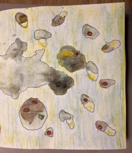 Rough Edges & Fabric Border: The slightly worn or stitched border gives the piece a handmade, almost mixed-media feel, suggesting it could be part of a larger work or fabric-based art.
