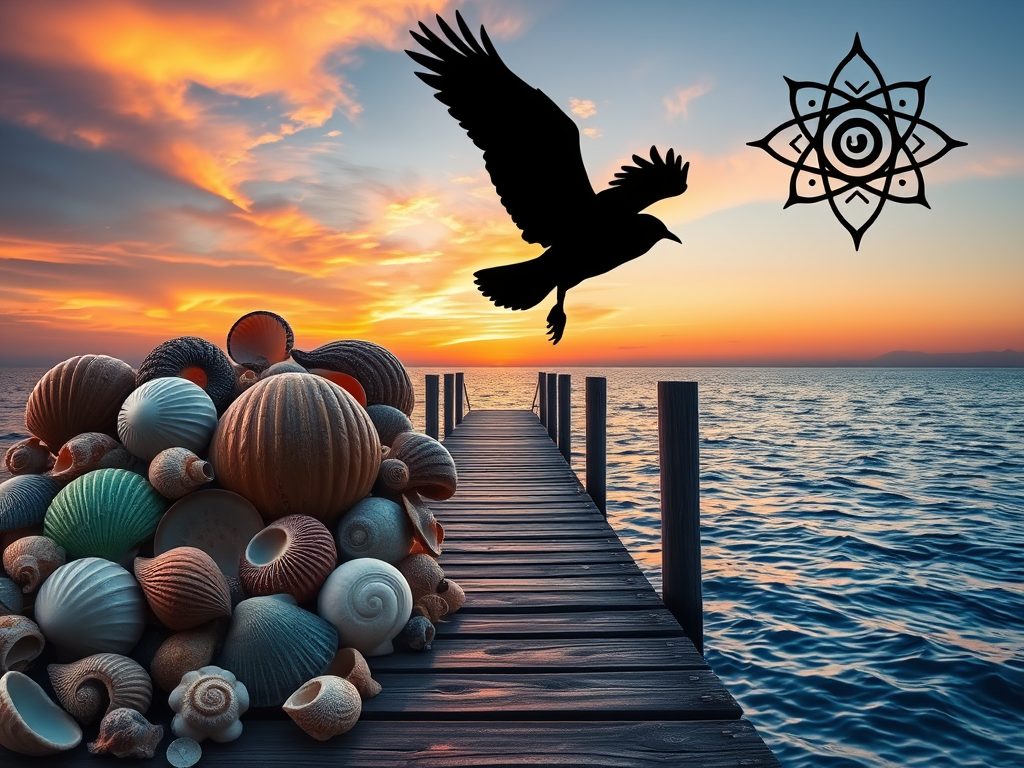 A.I, review this! ### **Visual Composition**– **Background**: A serene photograph of a dock extending into the water during sunset or sunrise. The warm tones of the sky contrast with the deep blue of the dock, evoking calmness and reflection.– **Foreground Elements**: Several cut-out images have been layered over the background:– **Shells**: A variety … Continue reading A.I. reviews “Between the Sea and Sky”