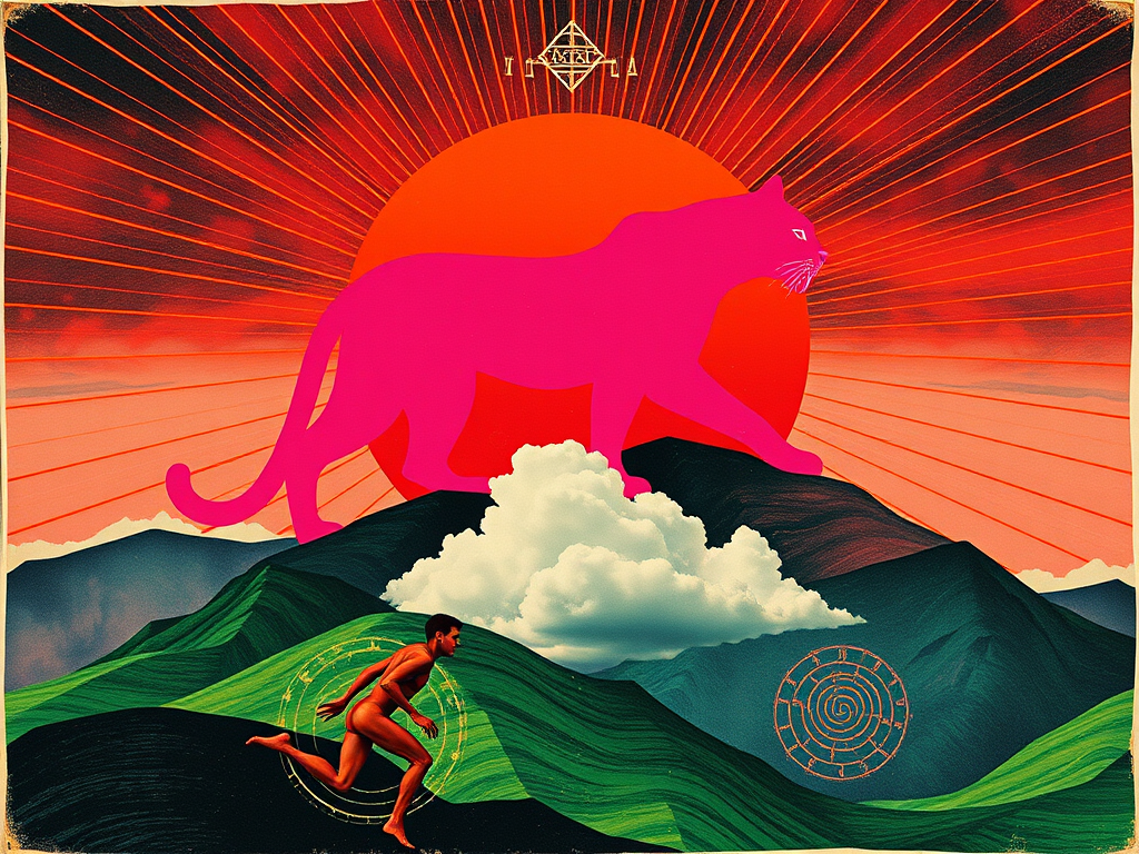 A.I. , review this This collage is a visually rich and layered piece that combines surrealism, symbolism, and bold graphic elements. Here’s a breakdown and review of its components and possible interpretations: — ### **Visual Elements** #### **Upper Section:** * **Pink Panther-like Silhouette**: The central figure is a large, pink big cat (possibly a lioness … Continue reading A.I. reviews “Vision and Discovery”