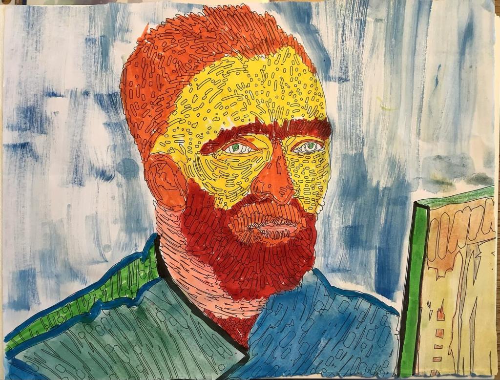 - The short, repeated strokes feel like data or signals—almost like the person is being “rendered” or decoded rather than simply painted. It gives a sense of thought loops, analysis, or overprocessing.