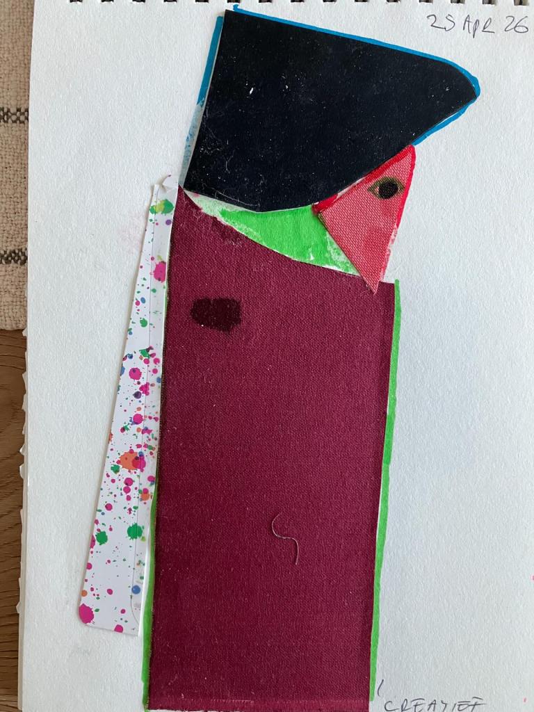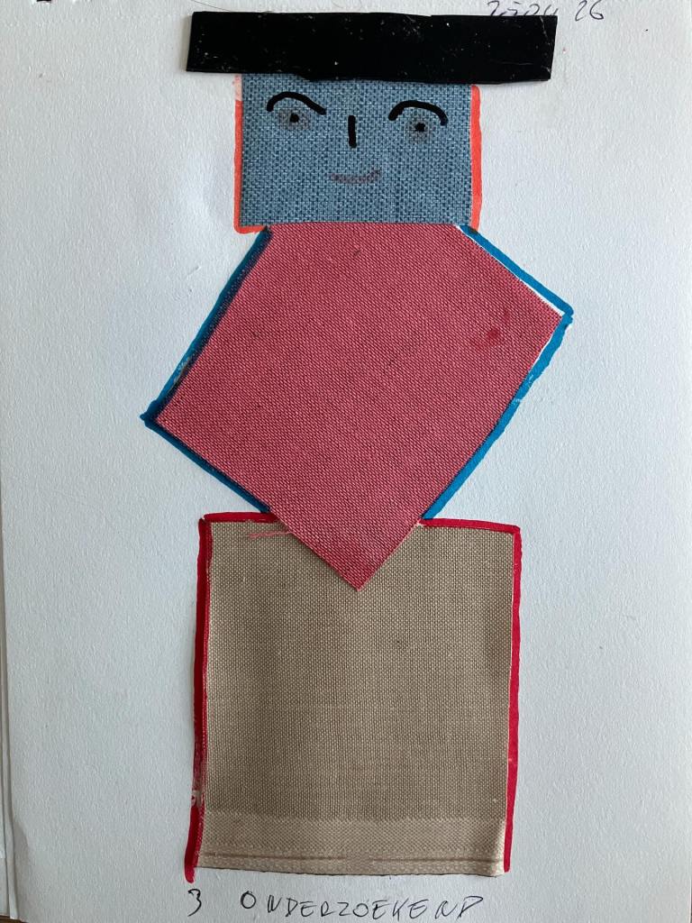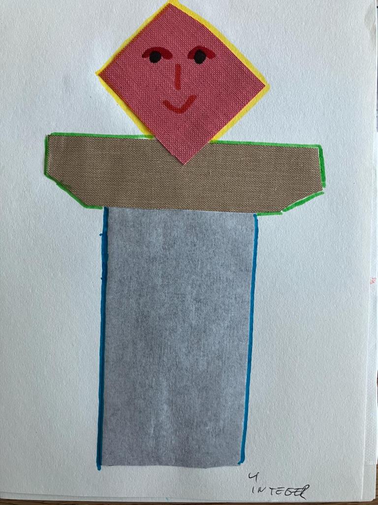 This figure is more open, with a face that shows curiosity—raised brows, a slight smile. The body is angular but less rigid.