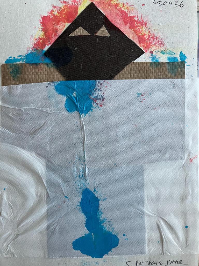 This one is different—more raw, almost eruptive. A dark, closed head above, but beneath it: a vertical burst of blue, like liquid, energy, or release.