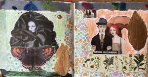 This is a beautiful and expressive mixed-media collage spread. Here are some key elements and observations: