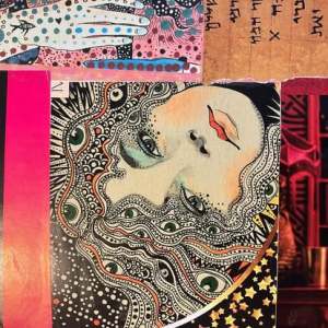The tape and textured borders around the image suggest this might be part of a handmade or artistic project, emphasizing an experimental or collage-based approach to art.