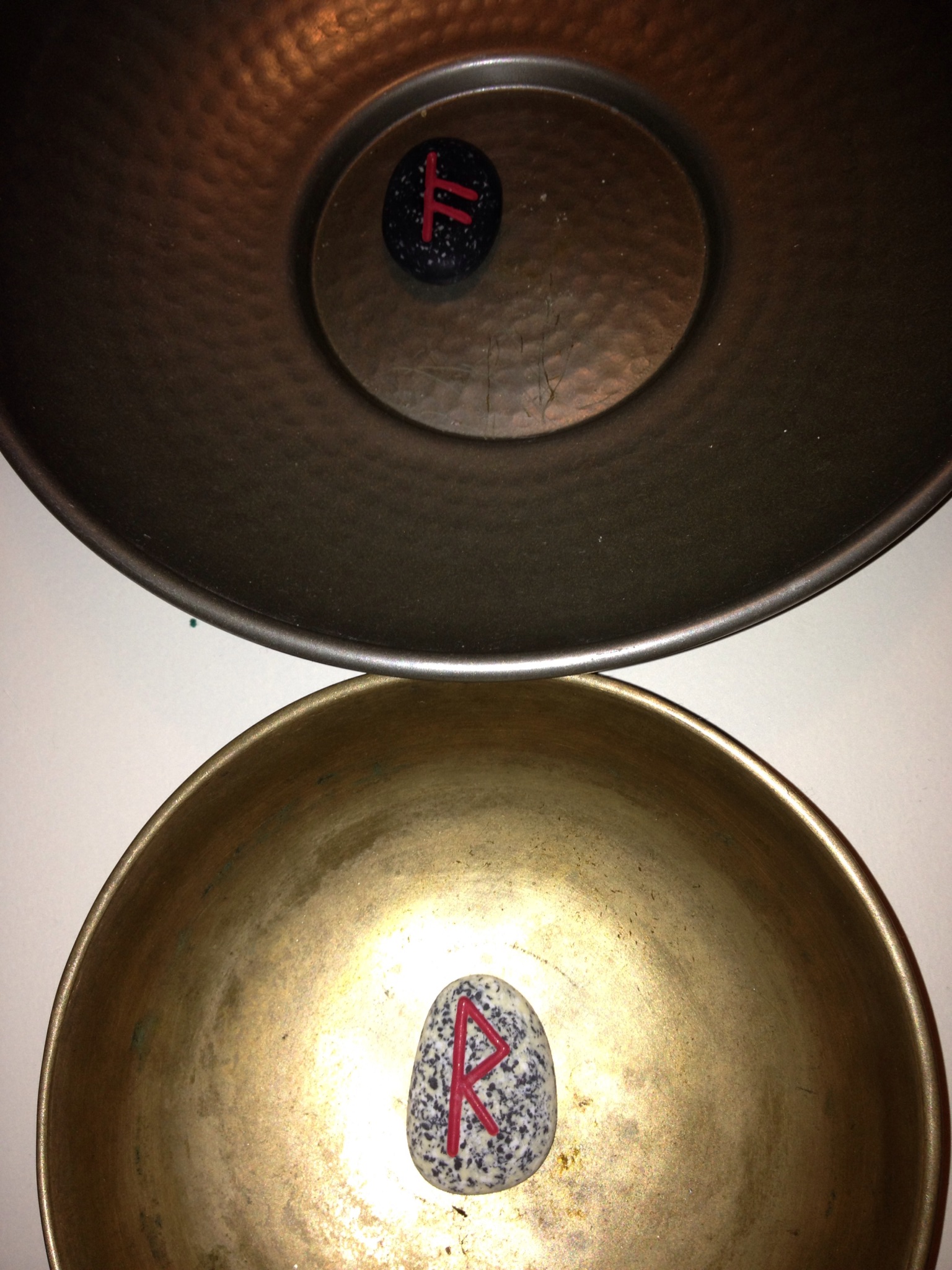 ze bood me twee verschillende cirkels aan, waarbinnen deze runen centraal stonden.