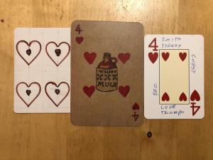 I put the Joker as my significator in the complete deck and placed the tableau in 4×13, leaving the last card out as a overall theme for this spread.